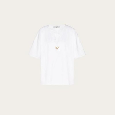 • 【包邮包税】 VALENTINO华伦天奴 21年春夏 女士 短袖T恤 T-SHIRT IN JERSEY VGOLD VB3MG11T69W0BO 预定商品1-3周发货