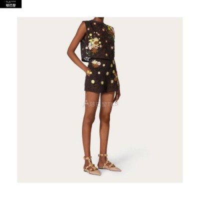 • 【包邮包税】 VALENTINO华伦天奴 21年春夏 女士 短裤 SHORT EN MACRAMé FLEURI BRODé VB0RF1P03QGW39 预定商品1-3周发货