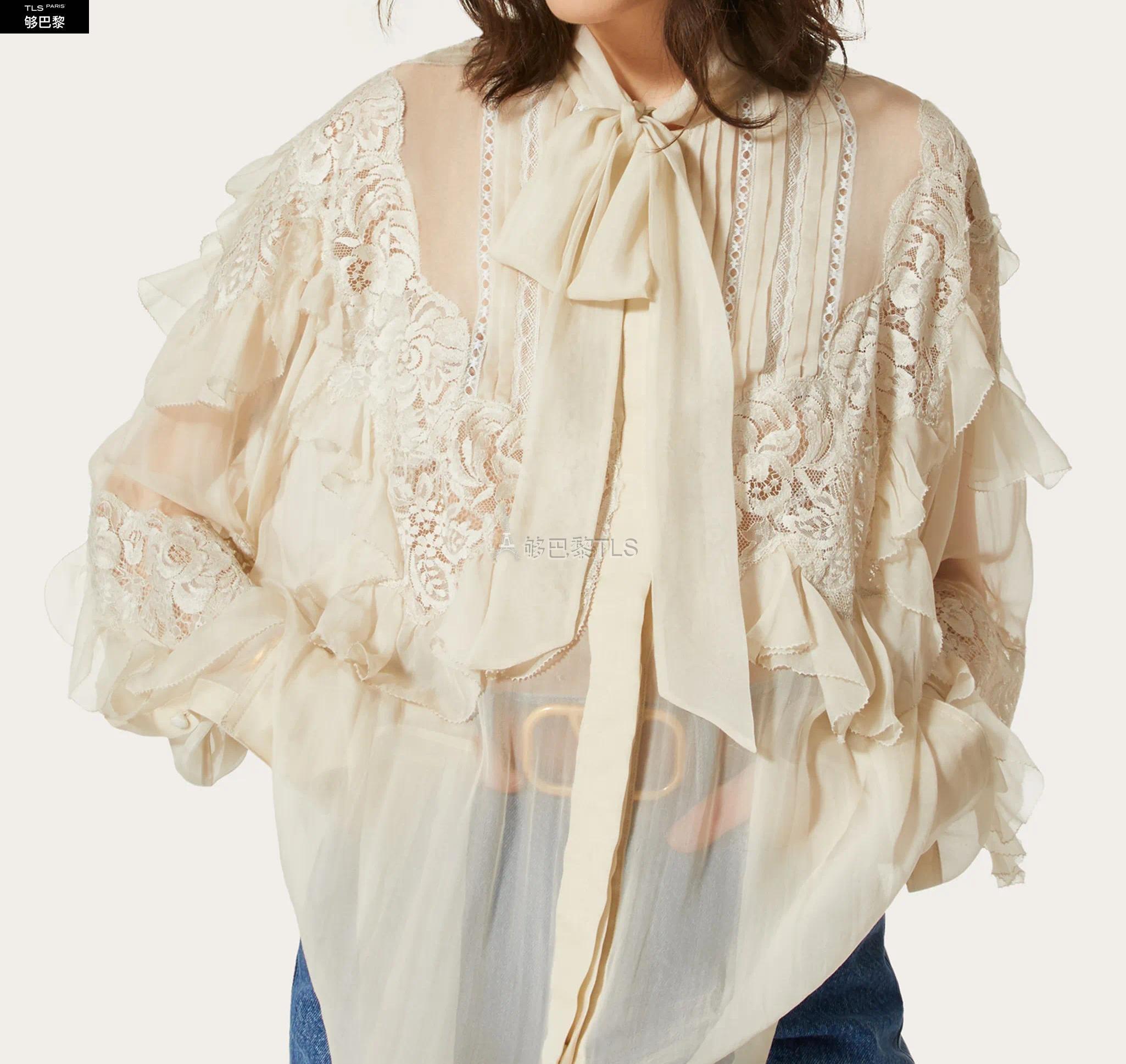 • 【包邮包税】 VALENTINO华伦天奴 21年春夏 女士 长袖衬衫 CHEMISIER EN MOUSSELINE VB0AB2902UPV57 预定商品1-3周发货