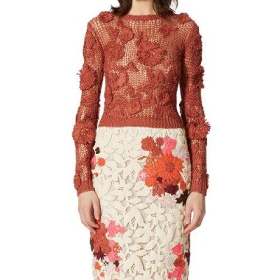 首頁 > 女裝 > 華倫天奴 > 【包稅】Valentino/華倫天奴21年春夏新款女士橙色亞麻刺繡亞麻毛衣VB0KC22Z6C0406