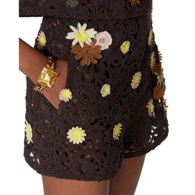 【包税】Valentino/华伦天奴 21年春夏新款 女士乌木色/多色棉质刺绣花朵花卉短裤VB0AE5X03QGW39
