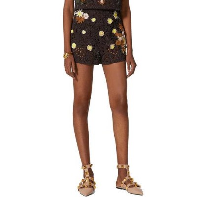 【包稅】Valentino/華倫天奴21年春夏新款女士烏木色/多色棉質刺繡花朵花卉短褲VB0AE5X03QGW39