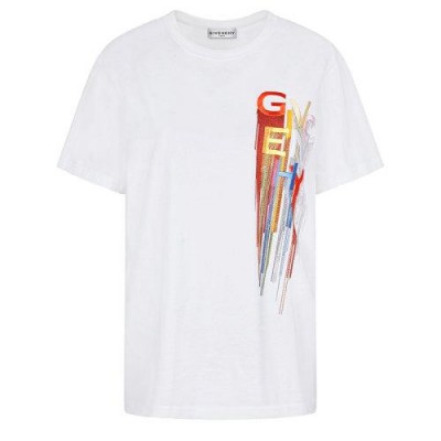 【包稅】Givenchy/紀梵希2021年新款女士白色棉質多色刺繡帥氣修身T恤BW707Z3Z43-100