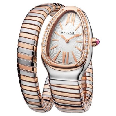 首頁 > 箱包配飾 > 寶格麗 > 【包稅】預定2-3周BVLGARI/寶格麗鑲有明亮切割鑽石的18K金玫瑰金表圈和不銹鋼單螺旋手鏈銀色不透明錶盤SERPENTI TUBOGAS石英手錶35毫米102237