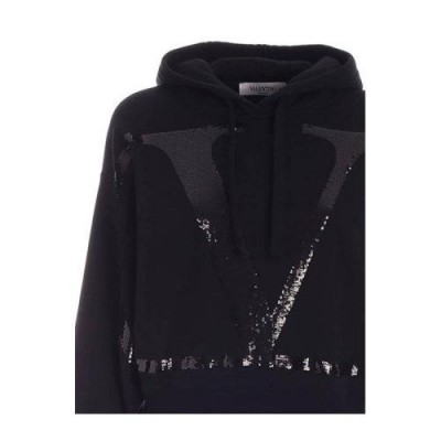 【包邮包税】Valentino/华伦天奴  女装 时尚百搭 女士黑色棉质连帽卫衣 UB3MF06U5R2 0NO