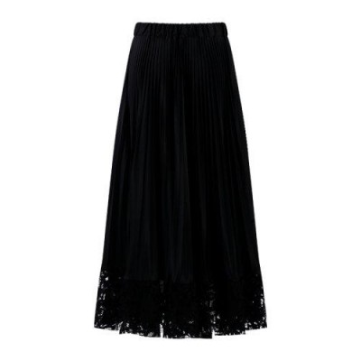 【包税】Valentino/华伦天奴 黑色 松紧百褶拼接蕾丝边长裙女士半身裙 TB3MD01H575 0N0