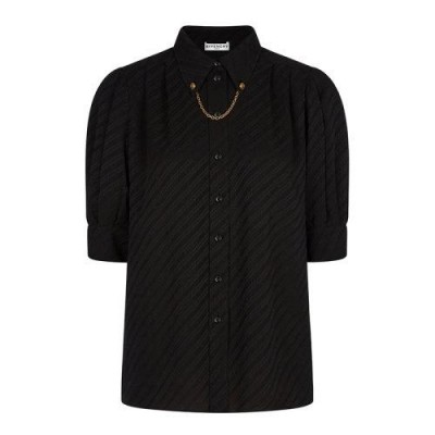 黑色真丝提花衬衫搭配GIVENCHY Chaîne图案,短泡泡袖设计,衣领饰有可拆卸小链条,配以2粒复古金色金属4G LOGO纽扣,正面饰以褶裥。
