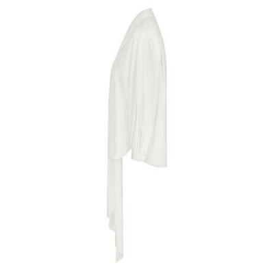 纯白色真丝提花衬衫,饰有GIVENCHY链条图案,围巾领,长泡泡袖,同系配色罗纹针织袖口。