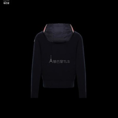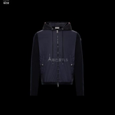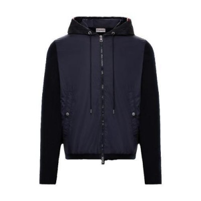 Cardigan pour homme, a capuche avec graphisme tricolore et devant en nylon avec garnissage en plumesPoint jersey finesse 18Fil 100 % coton pour le dos et les manchesDevant en nylon, garnissage en plume Ouverture sur le devant par zip injecteOuverture des poches par boutons-pressionLogo Moncler