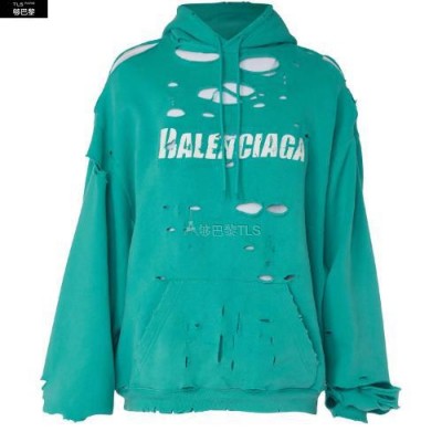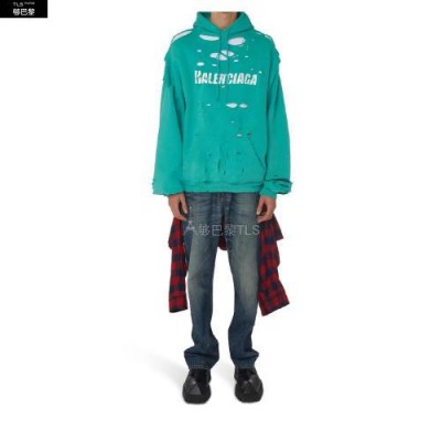 【包郵包稅】BALENCIAGA巴黎世家21年春夏男士衛衣Destroyed系列連帽衫BAL7THNRBLU預定商品1-3周發貨