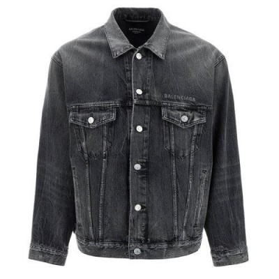 Balenciaga/巴黎世家 21春夏 男士 牛仔夹克 破坏洗水做旧 黑色 657607TBP47 1090【现货】