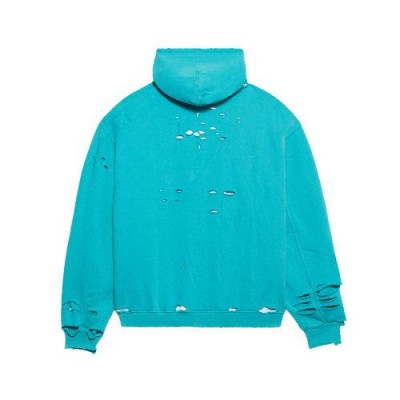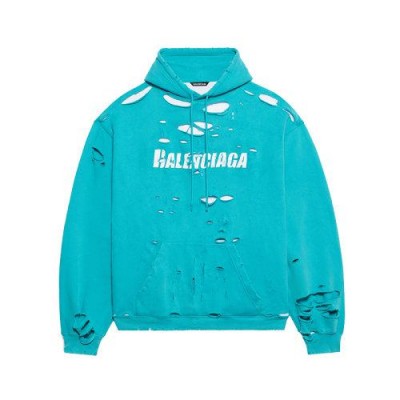 【包稅】Balenciaga/巴黎世家21早春新款男士藍色撕裂效果連帽大碼衛衣659403TKVB64661