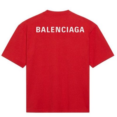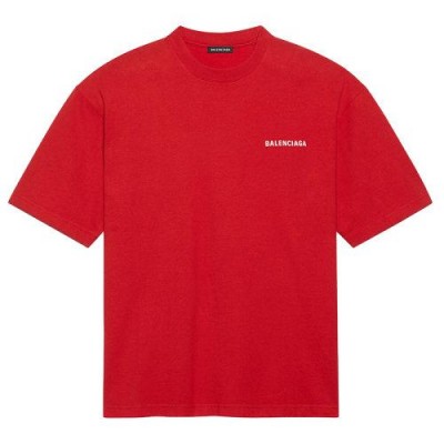 【包稅】Balenciaga/巴黎世家2021年新款男士紅色棉質中號徽標合身T恤612966TIVG56540