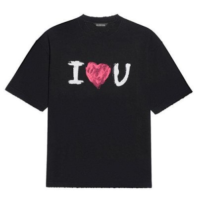 【包稅】Balenciaga/巴黎世家2021年新款I LOVE U男士黑色有機棉中號T恤612966TJVL51070