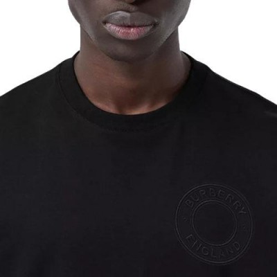 【包稅】BURBERRY/博柏利21年春夏新款男士黑色徽標圖案棉質寬鬆T恤衫80422321