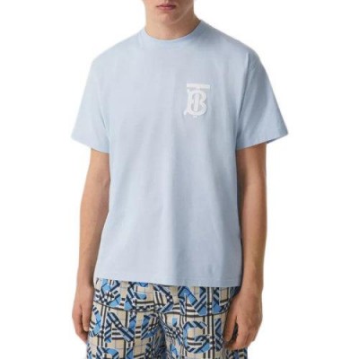 【包稅】BURBERRY/博柏利經典款男士淺藍色專屬標識圖案棉質寬鬆T恤衫80400621
