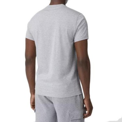 【包稅】BURBERRY/博柏利經典款男士淺麻灰色專屬標識圖案棉質T恤衫80140231