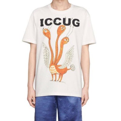 【包稅】預訂款1-2周GUCCI/古馳21年春夏新款Freya Hartas系列男士白色棉質動物印花T恤548334XJDJV9095