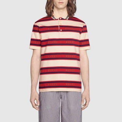 【預售】GUCCI/古馳Gucci提花條紋棉質Polo衫紅藍條紋645258 XJC6I 9209