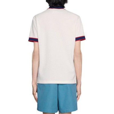 古驰(Gucci)的故事定义了对polo衫的这种现代诠释。GG细节叉脚饰有对比色衣领和袖口,让人联想到经典的网状乐队标志。