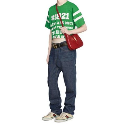 受温柔的英国童谣启发的版画与众议院的各种元素相结合,重新诠释了重要作品。在这件绿色T恤的正面,古驰(Gucci)创立之年伴随着这样的名言:“蛇很好,但这里是拥抱蛇的建议”。在背面,铭文“ Loved”和“ Sin Amore Nihil”揭示了品牌的浪漫灵感。