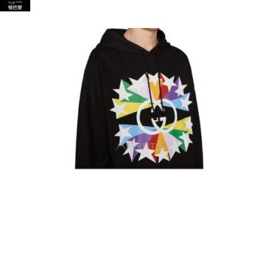 以夜空为灵感打造的彩虹色流星图案为无边序曲系列演绎了多款令人惊艳的设计。这款黑色针织棉卫衣匠心装饰互扣式双G星爆印花。
