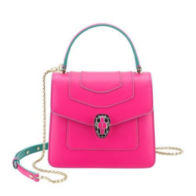 BVLGARI/寶格麗女士粉色小牛皮珐琅蛇頭包扣磁扣翻蓋開合單肩包斜挎包手提包鏈條包女包289469