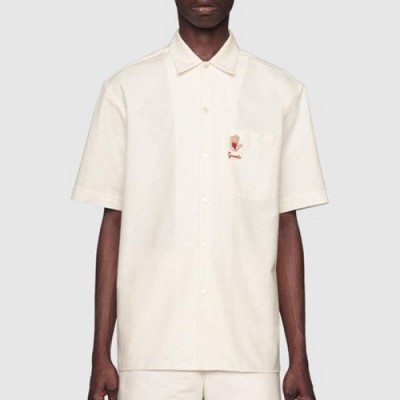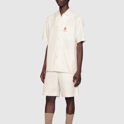 【包郵包稅】GUCCI/古馳古琦男裝男士米白色棉質時尚春夏保齡球衫短袖襯衫649711 ZAGIS 9799