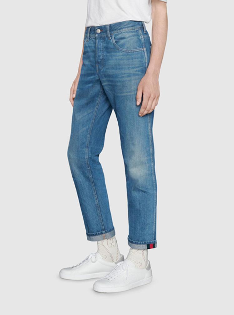 首頁 > 腕表 > 古馳 > GUCCI/古馳飾條紋織帶錐形牛仔褲【現貨】