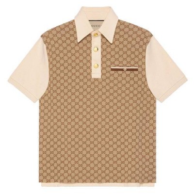 【包稅】GUCCI/古馳21年春夏新款男士象牙色GG圖案棉質真絲平紋針織提花短袖polo衫655435XJDGE2270