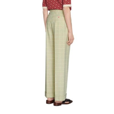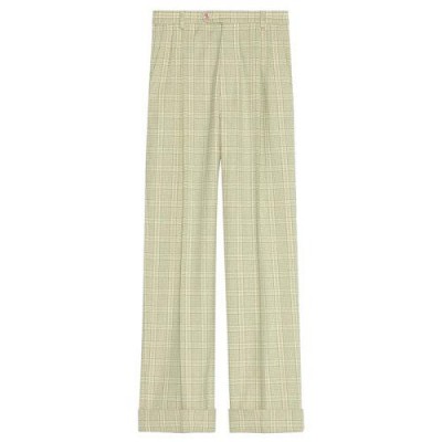 【包稅】GUCCI/古馳21年早秋新款男士米色和綠色格子呢圖案羊毛混紡長褲653360ZAFVF9672