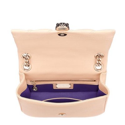 【包稅】BVLGARI/寶格麗SERPENTI CABOCHON系列女士蜜桃色絎縫小牛皮淺金鍍金黃銅黑白珐琅經典蛇首扣單肩包斜挎包鏈條包女包290612