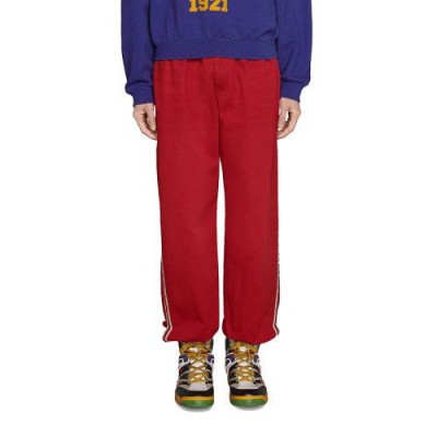 【包稅】GUCCI/古馳21年早秋新款男士紅色棉質運動褲653392ZAGP06429