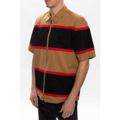 首頁 > 男裝 > 博柏利 > 【包郵包稅】BURBERRY/博柏利巴寶莉男裝男士拼色條紋棉質時尚拉鍊方領春夏短袖襯衫80367711
