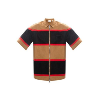 【包邮包税】BURBERRY/博柏利  巴宝莉男装 男士拼色条纹棉质时尚拉链方领春夏短袖衬衫 80367711