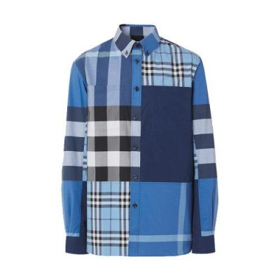 首頁 > 男裝 > 博柏利 > 【包郵包稅】BURBERRY/博柏利巴寶莉男裝男士亮鈷色棉質時尚格紋方領長袖襯衫80386551