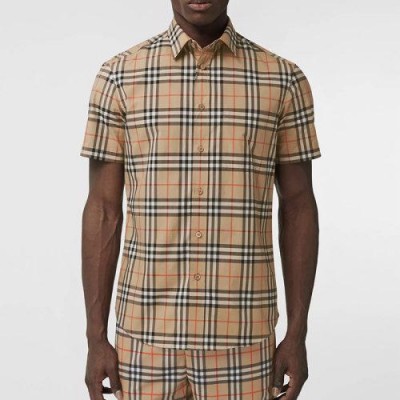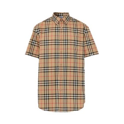 【包邮包税】BURBERRY/博柏利  巴宝莉男装 Vintage 男士米色棉质时尚休闲春夏短袖衬衫 80385241
