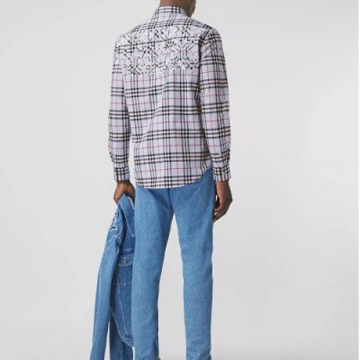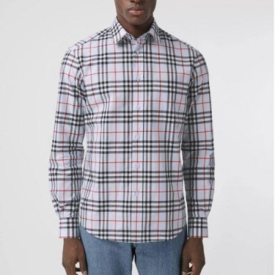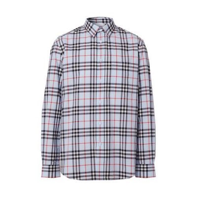【包邮包税】BURBERRY/博柏利  巴宝莉男装 Vintage 男士浅蓝色棉质时尚格纹方领长袖衬衫 80385221
