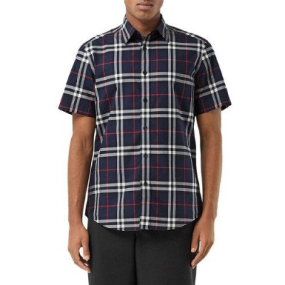 首頁 > 男裝 > 博柏利 > BURBERRY/博柏利男裝服飾21春夏棉質經典格紋翻領襯衣男士短袖襯衫
