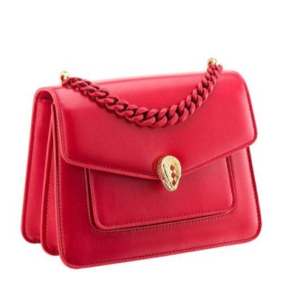 【包稅】預售2周貨BVLGARI/寶格麗2021春夏新款SERPENTI FOREVER系列女士小號紅色納帕皮革金色黃銅紅玉髓瑪瑙扣單肩斜挎包290763