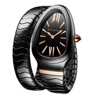 【包税】预定2-3周 BVLGARI/宝格丽 黑色陶瓷表壳和螺旋表带 镶有18K金玫瑰金元素 黑色烤漆表盘 SERPENTI SPIGA石英手表 35毫米102734