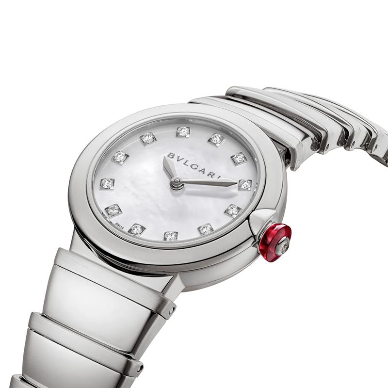 【包稅】預定2-3周BVLGARI/寶格麗精鋼錶殼和錶鏈白色珍珠母貝錶盤和鑲有鑽石的時標LVCEA石英手錶28毫米102196