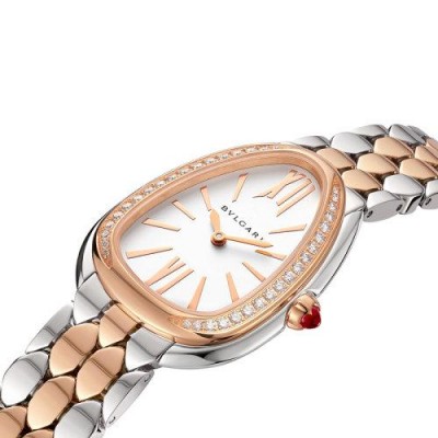 【包税】预定2-3周 BVLGARI/宝格丽 不锈钢表壳 镶有钻石的18K金玫瑰金表圈白色表盘和表链子 Serpenti Seduttori石英手表 33毫米103274