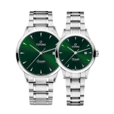 首頁 > 腕表 > 梅花 > TITONI/梅花瑞士手錶空霸系列時尚優雅休閒商務款自動機械男女款情侶錶對錶綠盤鋼帶23733/83733 S-673