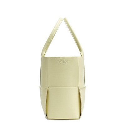 【包税】Bottega Veneta/葆蝶家 21春夏新款ARCO系列 女士中号冰淇淋色小羊皮格子编织手提托特包609175VCQC27450