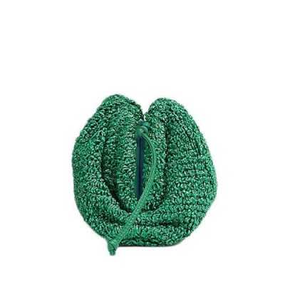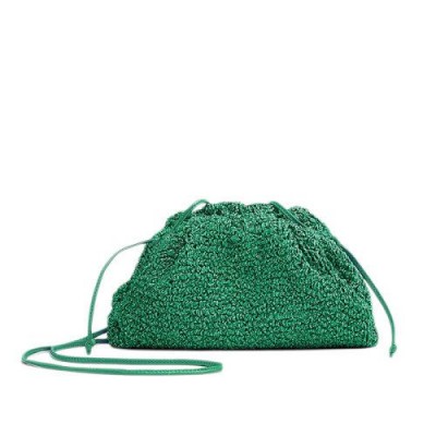 【包税】Bottega Veneta/葆蝶家 21春夏新款POUCH系列 女士迷你鹦鹉绿色皮革圈绒手拿斜挎云朵包585852V0SR13711