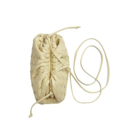 【包稅】Bottega Veneta/葆蝶家21春夏新款POUCH系列女士迷你霜淇淋色小羊皮編織手拿雲朵包585852VCPP17450