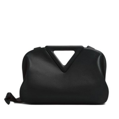 【包稅】Bottega Veneta/葆蝶家21新款POINT系列女士中號黑色小牛皮三角形手提包652446VCP401229