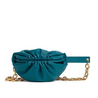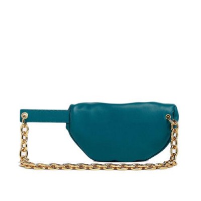 【包税】Bottega Veneta/葆蝶家 21春夏新款CHAIN POUCH系列 女士野鸭绿色小牛皮金色链条腰包手拿斜挎包651445VCP413118
