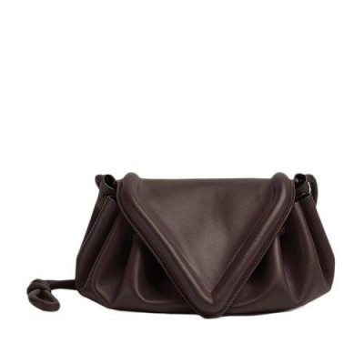 【包税】Bottega Veneta/葆蝶家 21新款BEAK系列 女士中号巧克力棕色小羊皮三角形翻盖单肩斜挎手拿包658523VCP302132